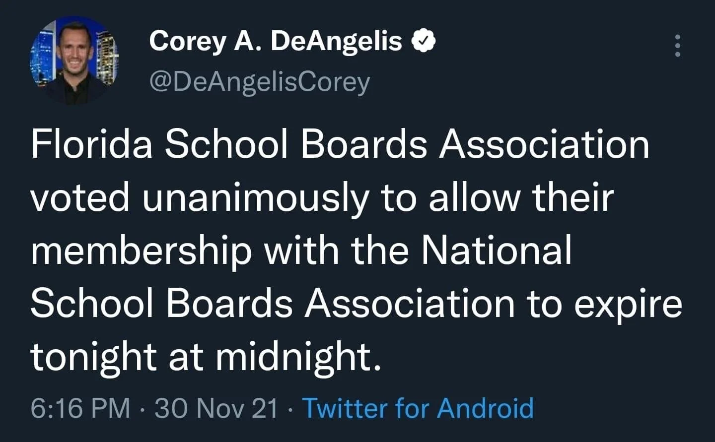 Excellent news coming out of the Sunshine State as they join a dozen other states having previously withdrawn themselves from the National School Boards Association.
